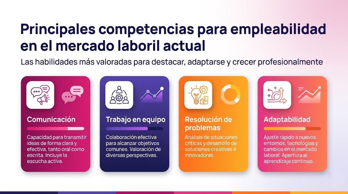 En un entorno laboral cada vez más competitivo, desarrollar competencias laborales ya no es opcional: es un factor decisivo para fortalecer la empleabilidad y acceder a mejores oportunidades en Latinoamérica. Estas competencias reúnen conocimientos técnicos, habilidades socioemocionales y actitudes que permiten desempeñarse con eficacia, adaptarse al cambio y responder mejor a las exigencias del mercado laboral.